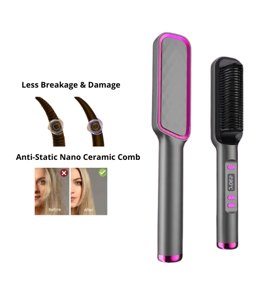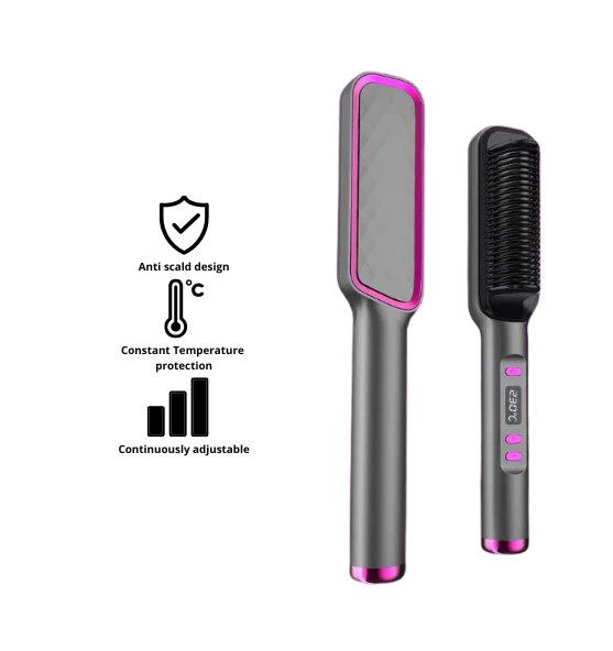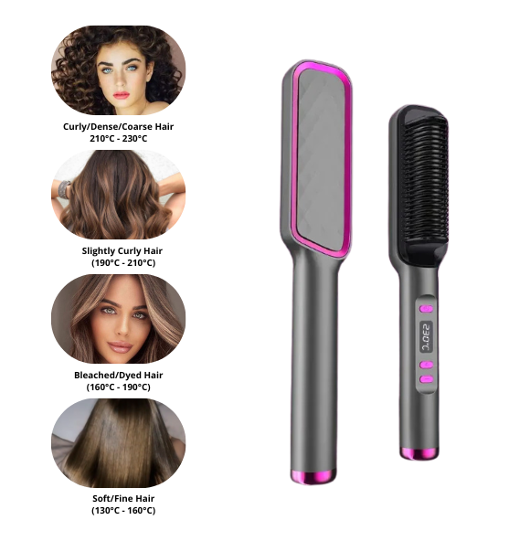 Negative ion technology prevents damage. Anti-scald design. Works effortlessly on all hair types.